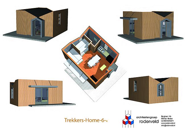Deze zes persoons Trekkers Home is afgeleid van de 4 persoons Trekkers Home en is geschikt voor 6 volwassen personen. Voorzien van vier tweepersoons gestapelde bedden. Een badkamer met toilet en een douche. Het keukenblok bevat een kooktoestel een koelkast en is eventueel uit te breiden met een magnetron.