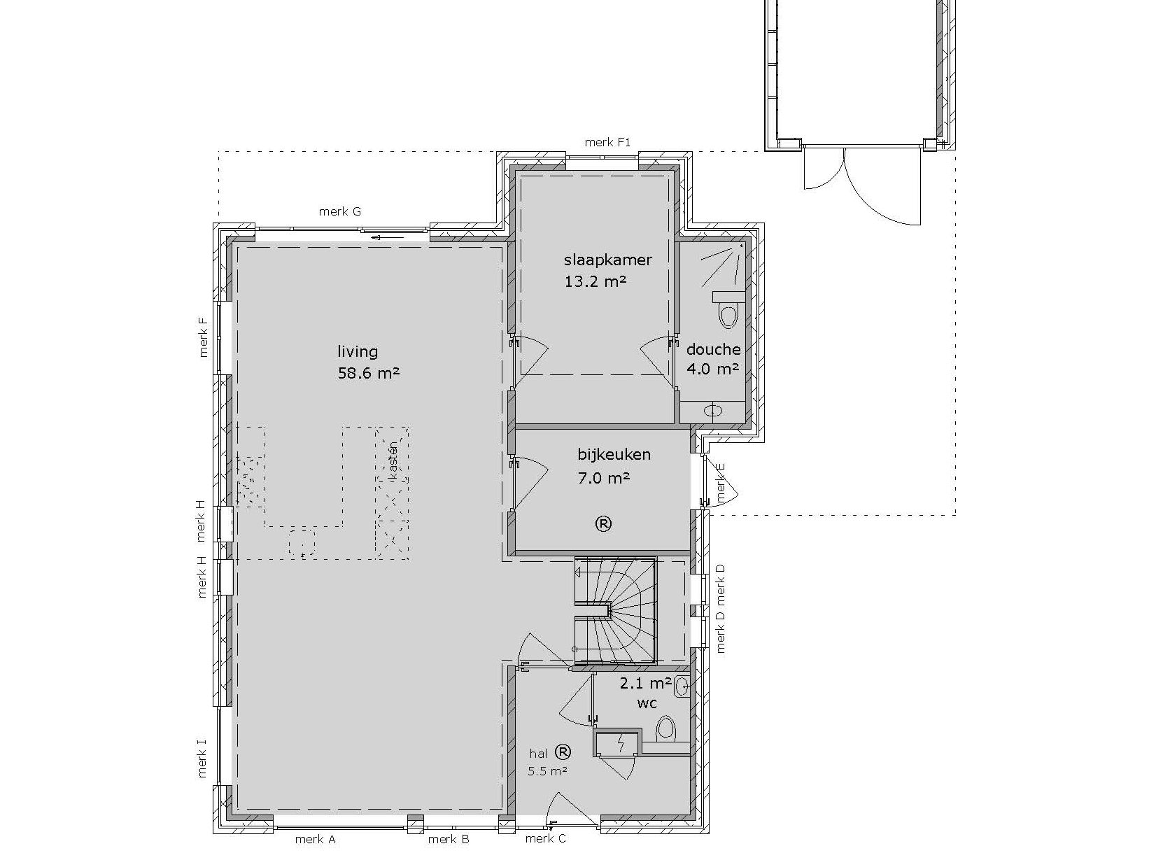 - Rc waarden: vloer 3,7 gevel 4,7 en dak 6,3